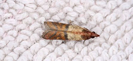 The Indian meal moth is a common pest recognized by its pale gray or coppery brown front wings.